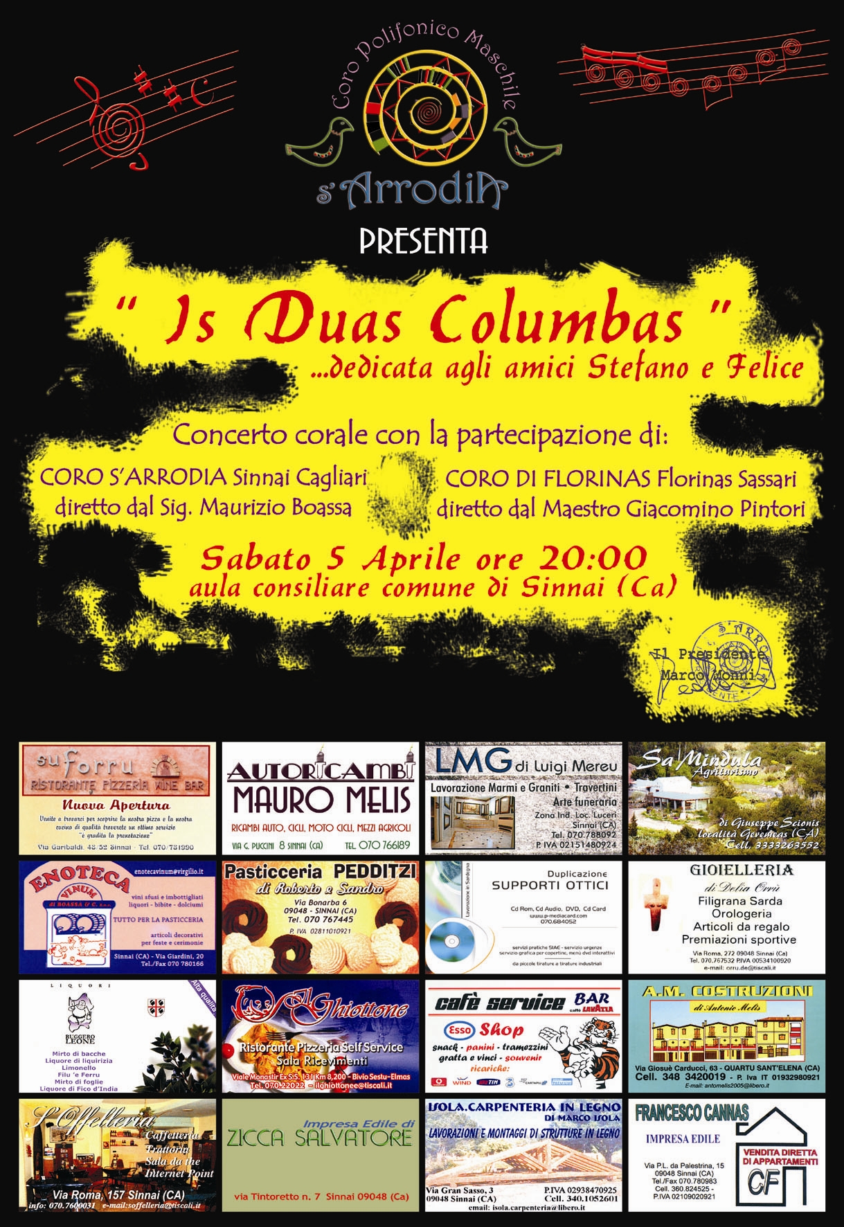 Il Coro S’Arrodia è fortemente attivo soprattutto nell’ambito della propria Comunità, partecipa sempre volentieri, dove invitato, alle iniziative delle numerose Associazioni Sinnaesi.