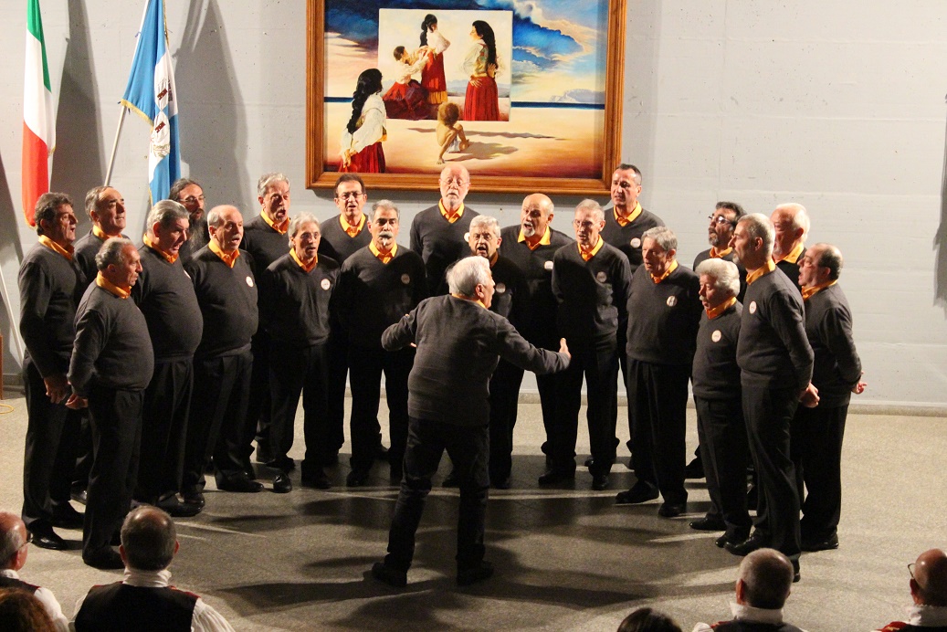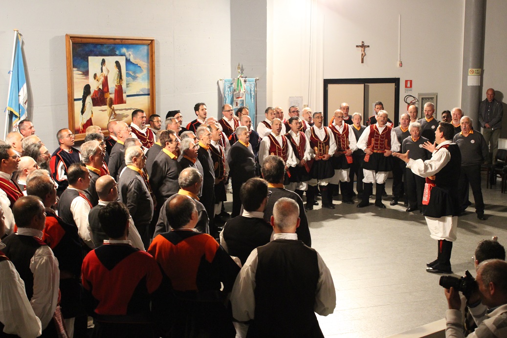 Terzo in scaletta è stato il coro di Nuoro che, come già detto, è il coro che per primo ha espresso un genere di canto che, evolvendo il canto “a tenores” e “a cuncordu” a quattro voci pari per coro maschile, non solo ha dato vita a brani destinati a rimanere per sempre nella storia della tradizione sarda, ma ha dato ispirazione a tutti i cori di musica popolare di cui anche noi facciamo parte. Grande è stata l’emozione suscitata nel pubblico nell’ascoltare i famosissimi brani proposti e ancor più grande nell’ascoltare, in un silenzio surreale, le parole del suo storico direttore il M° Giampaolo Mele che, nonostante le precarie condizioni di salute, ha presentato le proprie composizioni con parole forti e toccanti senza nascondere qualche lacrima sfuggita spontaneamente mentre parlava dei brani dedicati a moglie e figlio scomparsi. Il pubblico ha apprezzato tantissimo dedicando al decano del canto polifonico sardo una lunga standing ovation.