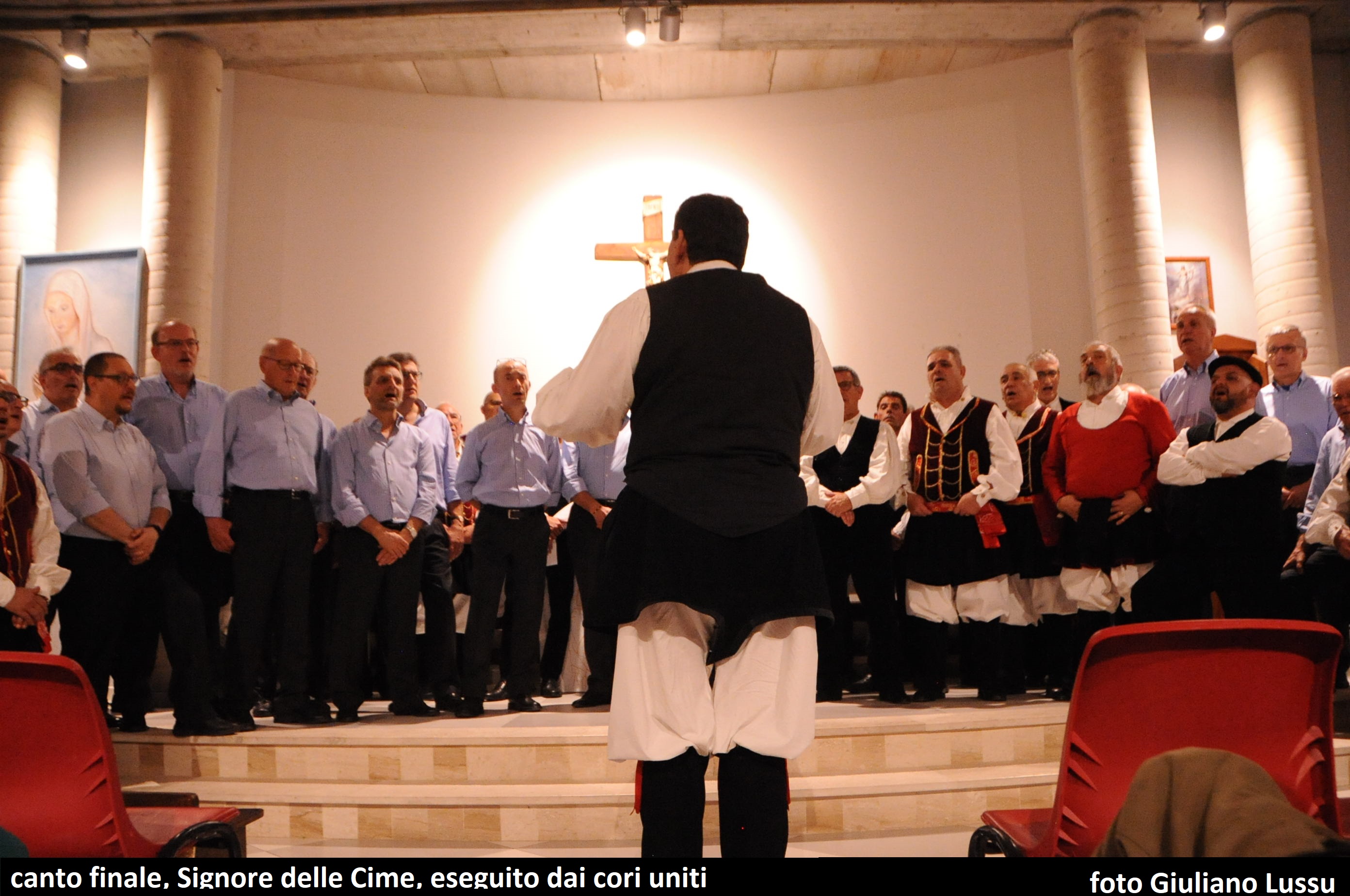Dopo l’immancabile scambio di doni e i saluti, ai quali si è unita anche la Vicesindaco Katiuscia Concas, la serata si è conclusa col canto “Signore delle cime” eseguita dalle tre formazioni unite in un unico grande Coro diretto dal nostro Maurizio.