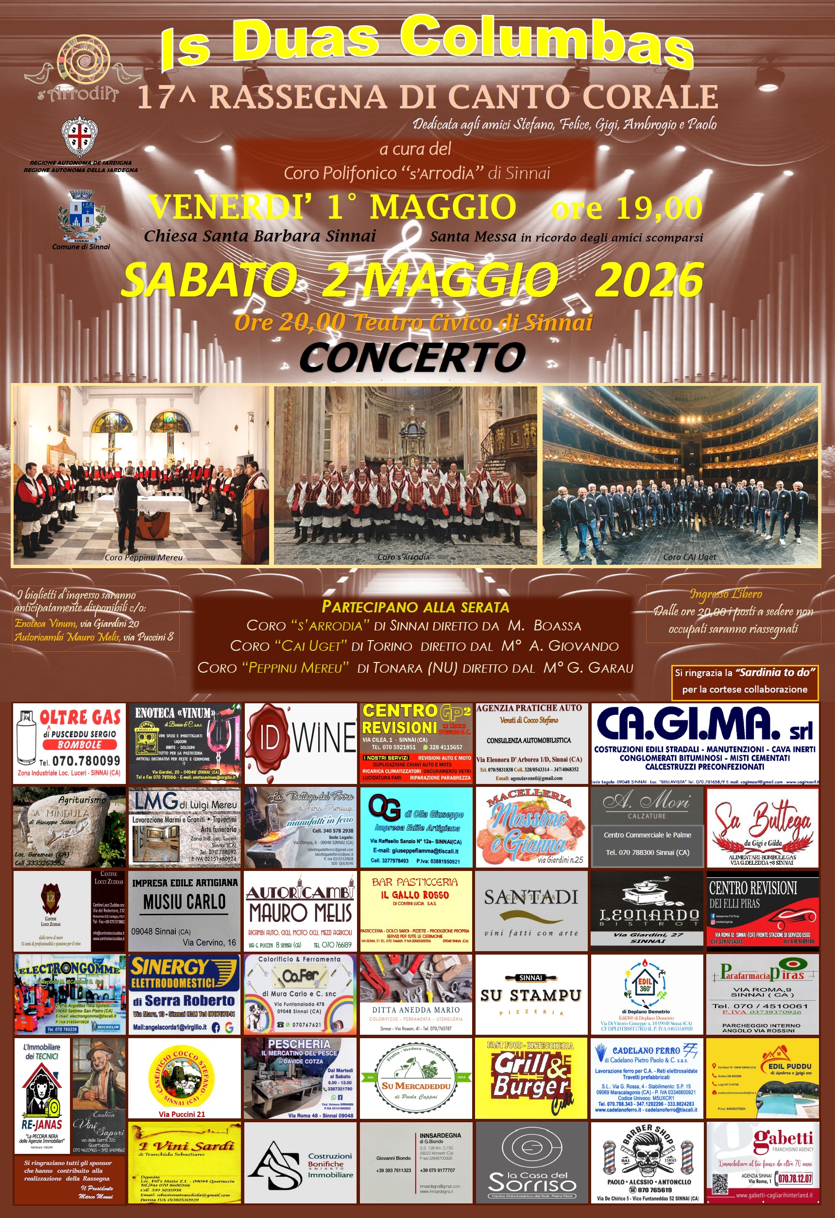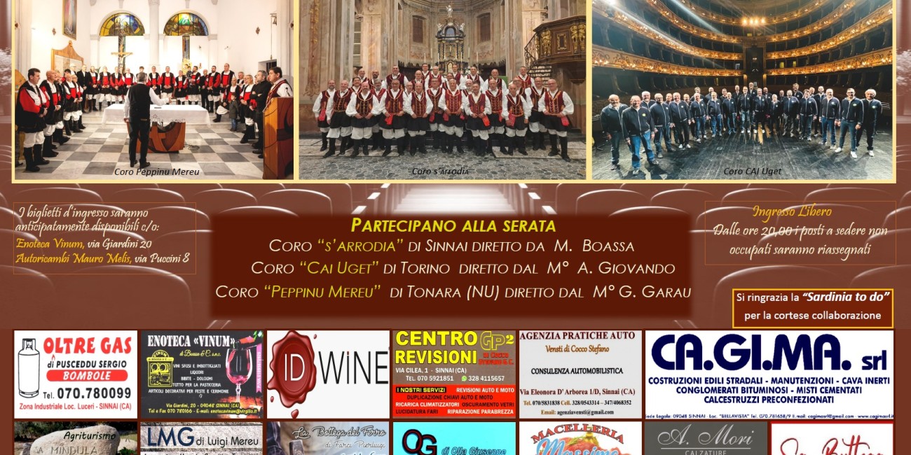 Numerose sono inoltre le attività culturali; Sinnai brulica infatti di associazioni dedite alla musica, al teatro e alle tradizioni popolari; esistono infatti, oltre alla nostra, parecchie realtà tra Corali, Bande Musicali, Gruppi Folk, una compagnia teatrale ed una Scuola Civica all’interno della quale giovani e meno giovani possono apprendere l’arte del canto popolare ed, in particolar modo, dare continuità al buon nome che Sinnai detiene nel campo dell’improvvisazione Poetica.